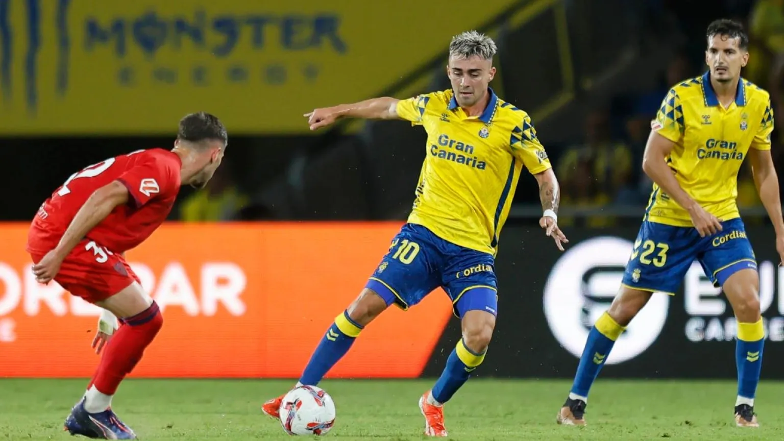 La UD Las Palmas comienzo la temporada con un valioso punto en su cartera tal cual se desarrolló el encuentro ante el equipo sevillista. El equipo dirgido por Luis Carrión igualó a dos tantos en el Estadio de Gran Canaria donde los locales estuvieron siempre a remolque en el marcador, pero con dos más que meritorias reacciones consiquieron equilibrar el marcador ante el equipo dirigido desde esta temporada por el ex amarillo García Pimienta. El empuje de McBurnie y la definición y calidad de Sandro en el segundo tanto equilibraron el marcador.