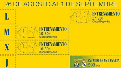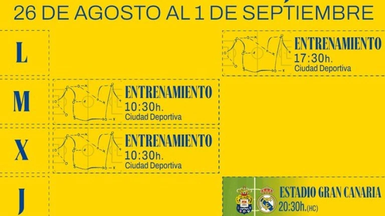 El martes y el miércoles, el entrenamiento del equipo que dirige Luis Carrión será a las 10.30 horas, en la Ciudad Deportiva, y el jueves, a las 20.30 horas, recibe al Real Madrid en el Estadio de Gran Canaria.