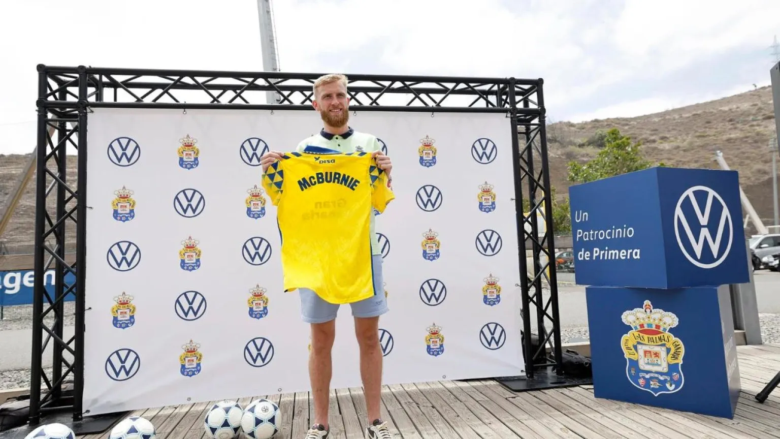 Oli McBurnie, nuevo jugador amarillo, fue presentado ante los medios en un acto en el que la UD Las Palmas estuvo arropada por su patrocinador Volkswagen Canarias, en la Ciudad Deportiva. El nuevo componente de la plantilla inició su comparecencia indicando que "conocí el interés de la UD y contactamos con Luis Helguera y la dirección deportiva, estoy muy emocionado de comenzar esta nueva etapa".