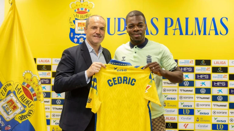 El hispanocamerunés hablaba del salto de jugar con la UD Las Palmas en primera división: "Jugar en Primera es un gran reto, estoy preparado. Tengo cosas por mejorar y seguir creciendo, tengo que seguir trabajando y esforzarme al 200% cada día".