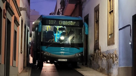 Una guagua tuvo que pasar por una calle estrecha del casco histórico para mejorar la fluidez del tráfico ante la imposibilidad de girar por un coche mal aparcado