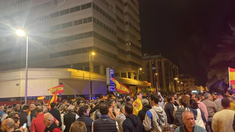 Cientos de personas se han concentrado esta tarde noche ante la sede del PSOE de Canarias en Las Palmas de Gran Canaria para expresar su rechazo a la ley de amnistía y a los acuerdos del PSOE con los partidos independentistas para la investidura de Pedro Sánchez como presidente del Gobierno.