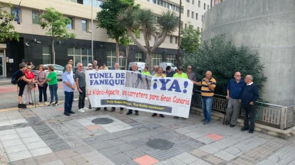 El foro Roque Aldeano se ha manifestado esta mañana a las puertas de Presidencia del Gobierno de Canarias pidiendo una solución para los trabajos de la carretera de La Aldea y los túneles de Faneque, ante el retraso en su apertura y el hecho de que no se van a cumplir las fechas de entrega que se habían anunciado por parte de la consejería de Obras Públicas del ejecutivo regional.