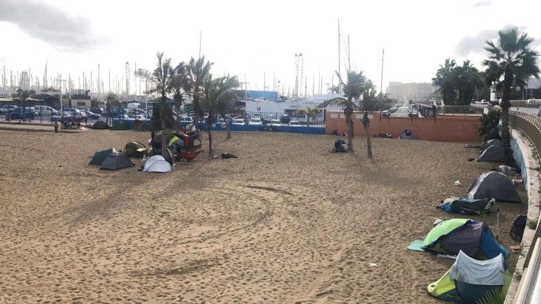 Vecinos de las Alcaravaneras han denunciando que hay un asentamiento de más de 20 tiendas de campaña en la playa. Están repartidos por la zona más pegada al muelle deportivo, cerca de las palmeras y del muro bajo al paseo, dejando una “imagen lamentable y con un olor insoportable”.