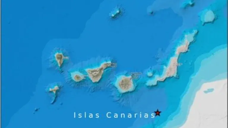 Ha sido detectado a 0 kilómetros de profundidad y en aguas situadas entre el sureste de Canarias y la costa africana