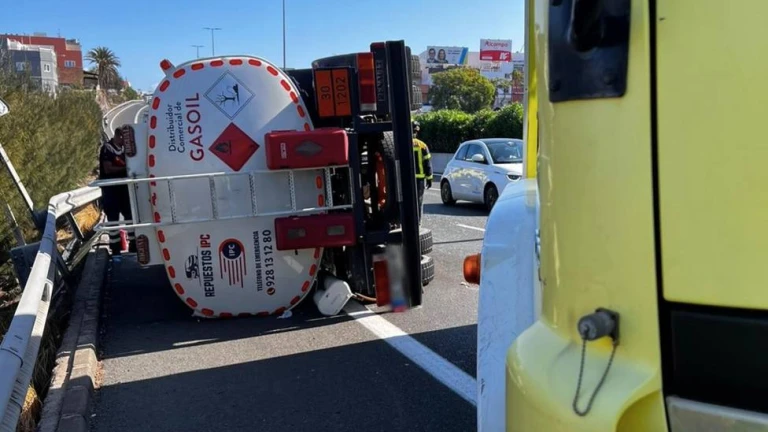 Vuelca un camión cisterna en la GC-1 y evacúan al hospital a un menor con lesiones leves