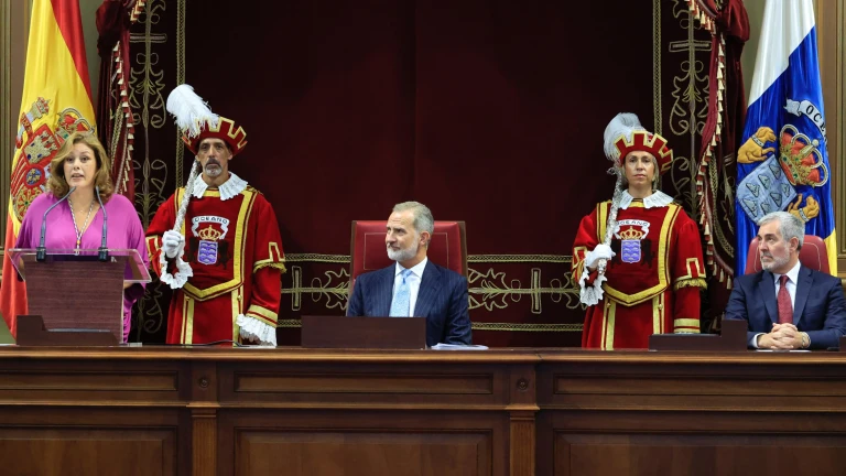 En su discurso, Astrid Pérez dijo al rey que esta medalla muestra la más alta consideración, afecto y resto del pueblo canario con la Casa Real, coincidiendo con el primer decenio de reinado de Felipe VI, en el que el rey "ha dado ejemplo de integridad, honradez y transparencia".