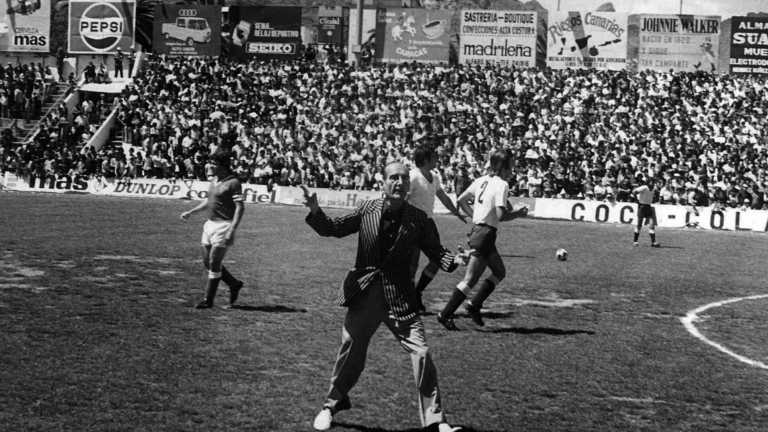 El mítico Paco Zuppo arengando al público del Heliodoro Rodríguez López al son del 'Riqui Raca'.