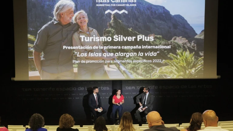 El spot fue presentado hoy ante los profesionales del sector y los medios de comunicación en el TEA, en Tenerife. En el acto estuvieron presentes Yaiza Castilla, consejera de Turismo, Industria y Comercio del Gobierno de Canarias; Iñaki Ortega, consejero asesor del Centro de Investigación Ageingnomics de Fundación Mapfre y director académico de la CEOE; y Alberto Ávila, director de proyectos de Marketing de Turismo de Islas Canarias.
