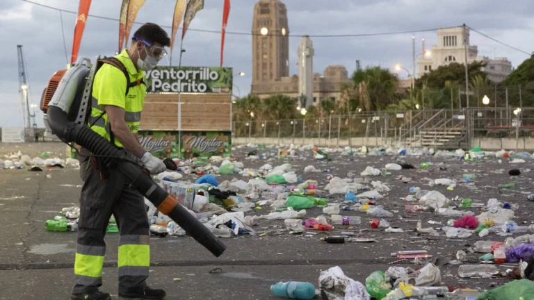 El Ayuntamiento de Santa Cruz de Tenerife recogió un total de 192.100 kilos de residuos durante el carnaval en la calle. El operativo especial de limpieza contó con 150 trabajadores que recogieron 5.300 kilos de envases, 4.080 kilos de papel y cartón y más de 182.720 kilos de restos entre el jueves y el lunes.
