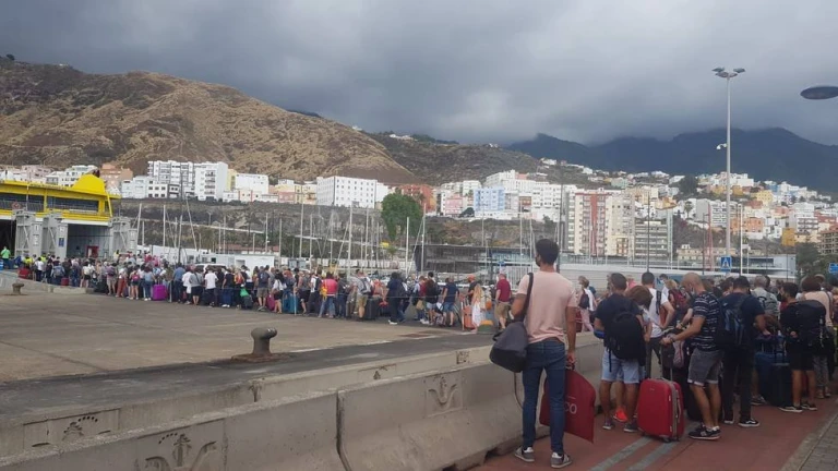 Colas interminables en el muelle de Santa Cruz de La Palma para salir de la isla