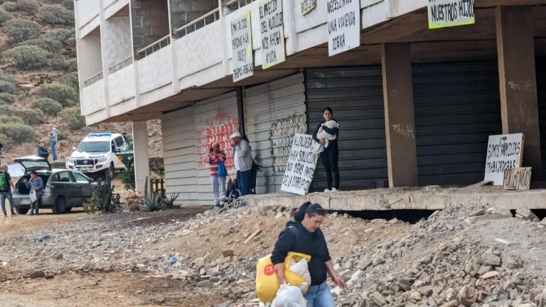 La mañana ha transcurrido con normalidad en el desalojo del edificio Chasna en Costa del Silencio, sin grandes incidentes y con los protagonistas abandonando de manera ordenada un inmueble que desde 2021 cuenta con un informe técnico del Ayuntamiento de Arona en el que se declara el riesgo de derrumbe.
