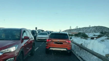 El Teide vuelve a ser noticia por el nuevo colapso de tráfico que se ha registrado este martes tras la apertura de las carreteras después de la nevada de la semana pasada.