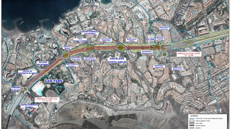 La Consejería de Obras Públicas, Transportes y Vivienda del Gobierno de Canarias, que dirige Sebastián Franquis, ha publicado en la Plataforma de Contratación del Sector Público el anuncio por el que se licita tanto la redacción de proyecto como las obras del falso túnel en la TF-1 entre Las Américas y Fañabé, en los municipios de Arona y Adeje, y las vías colectoras sobre el mismo. Para este contrato, la Consejería destina una partida de 107.222.750 euros, cuyo gasto plurianual fue autorizado por el Consejo de Gobierno el pasado mes de marzo.