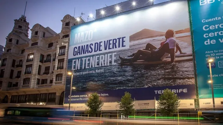 Tenerife se promociona en el mercado peninsular con una gran lona en Gran Vía