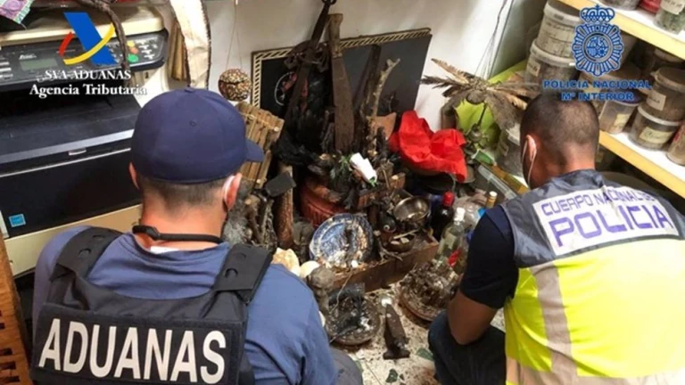 Actuación que han llevado a cabo agentes de Policía Nacional y funcionarios de Vigilancia Aduanera de la Agencia Tributaria, y la investigación se inició en 2021, cuando se tuvo conocimiento de que en dos establecimientos de Tenerife, uno en Arona y otro en La Laguna, se vendían animales de especies protegidas y restos de éstos para su utilización en ritos de santería.