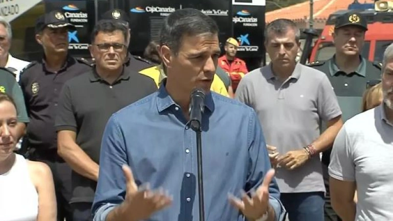 Sánchez ha garantizado que el Gobierno "se involucrará" en las labores de reconstrucción de las zonas afectadas y en la ayuda a las personas damnificadas por el fuego, y ha proclamado que "toda España está con Canarias y con Tenerife".