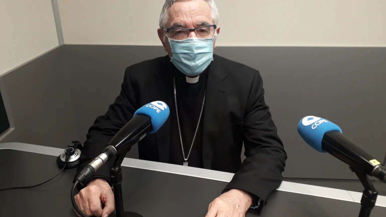 Don Manuel Sánchez Monge, en los estudios de Cope Cantabria antes de la llegada de la Navidad