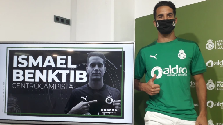 Ismael Benktib posa para Cope Cantabria como nuevo jugador del Racing en la sala de prensa de El Sardinero