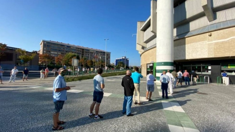 Foto de archivo de aficionados del Racing haciendo cola en las taquillas de El Sardinero