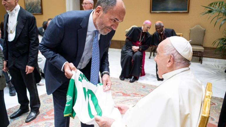 Sebastián Ceria, consejero del Racing y presidente de su Fundación, entregó al Papa Francisco una camiseta conmemorativa del 111 aniversario del club verdiblanco. El Sumo Pontífice recibió la elástica, con el número 10 y su nombre estampado en la espalda, en la Ciudad del Vaticano dentro del encuentro 'Cómo abordar la crisis de la deuda en el Sur Global' organizado por la Pontificia Academia de Ciencias Sociales y Columbia's Initiative for Policy Dialogue’, organismo presidido por los prestigiosos economistas Joseph Stiglitz (Premio Nobel) y Martín Guzmán.