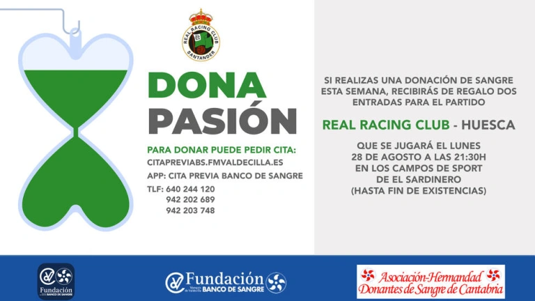 El Racing colabora, una temporada más, con la Asociación de Donantes de Sangre y el Banco de Sangre y Tejidos de Cantabria ante la necesidad de sangre.