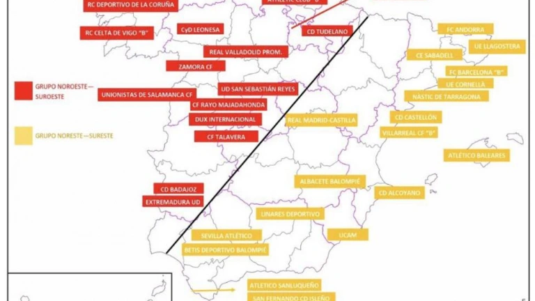 Plano con la distribución de los clubes que jugarán en los 2 grupos de la 1ª División RFEF