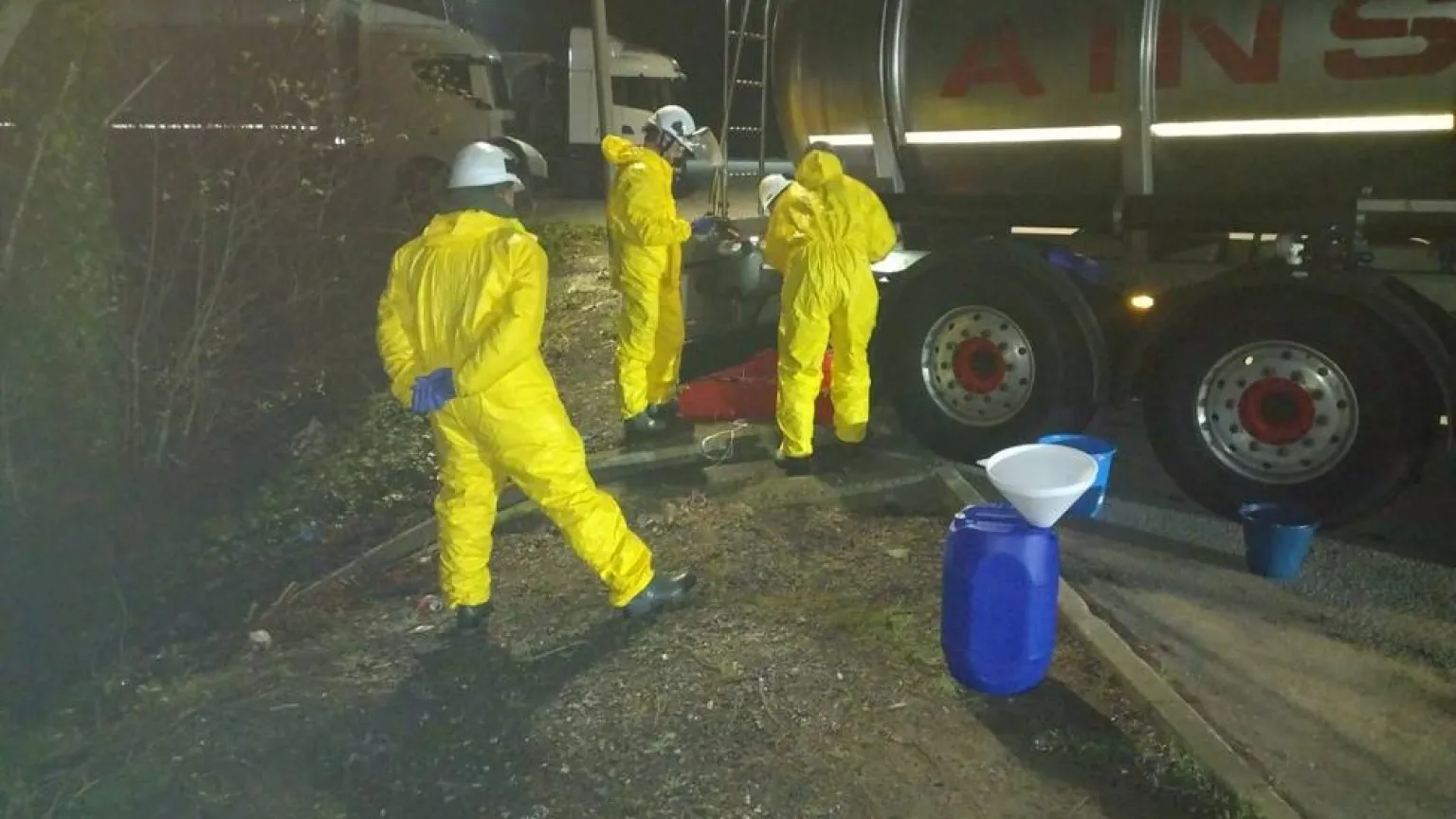 Controlada la fuga de ácido clorhídrico del camión parado en una estación de servicio de Ambrosero