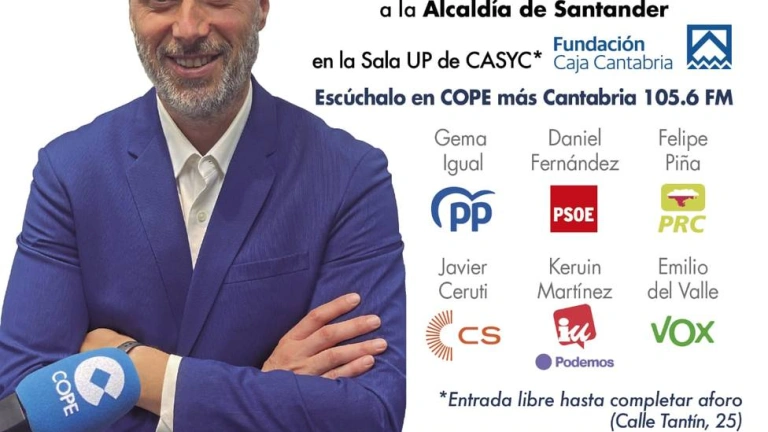La Cadena Cope en Cantabria celebrará este martes 16 de mayo el debate electoral con los números uno a la alcaldía de Santander con las 6 principales fuerzas políticas de la capital antes de las elecciones municipales y regionales del 28 de mayo. Participarán Gema Igual (PP), Daniel Fernández (PSOE), Felipe Piña (PRC) Javier Ceruti (Ciudadanos), Keruin Martínez (IU-Podemos) y Emilio del Valle ( VOX).