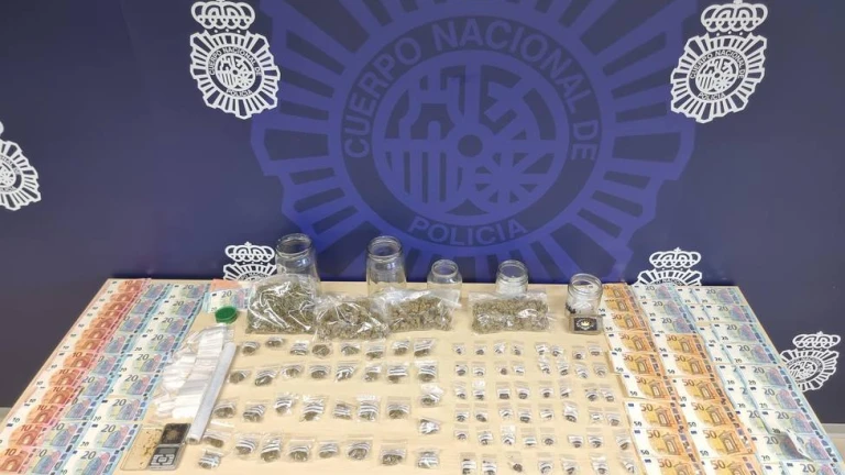 En el registro se incautaron 57 dosis de hachís de tres gramos cada una y 48 de marihuana de cuatro gramos cada una, preparadas para la venta; una tableta de hachís de 100 gramos; una bolsa de marihuana de 130 gramos y otra de picadura de marihuana de 100 gramos; 2.325 euros en efectivo y útiles destinados a la actividad.