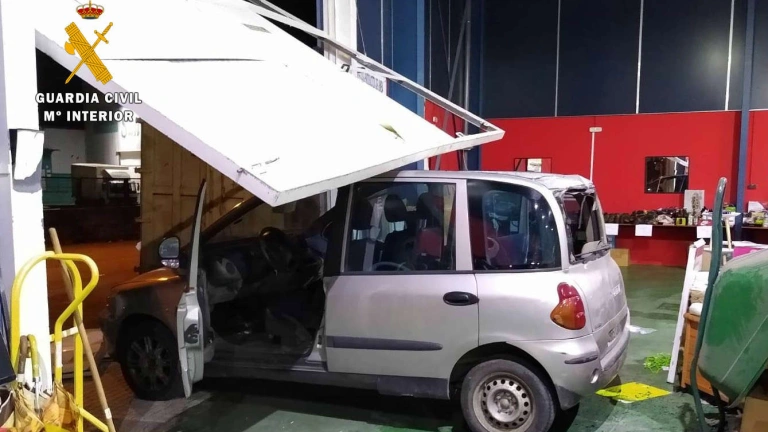 Cuando caía la noche la Guardia Civil fue advertida sobre el intento de alunizaje en un estanco de la localidad de Hinojedo. En este caso, él, o los autores no lograron el objetivo, ya que el ruido ocasionado alertó a los vecinos, por lo que los delincuentes abandonaron el lugar en una furgoneta. Con estos datos, la Guardia Civil dispuso un operativo de búsqueda con el fin de localizar el vehículo implicado en tales hechos. Una hora más tarde, una de las patrullas del operativo, observó una furgoneta empotrada contra la puerta de acceso a una nave industrial que alberga un gran bazar en Santiago de Cartes. Al acercarse al lugar, sorprendieron a dos hombres cargando el vehículo con diferentes objetos.