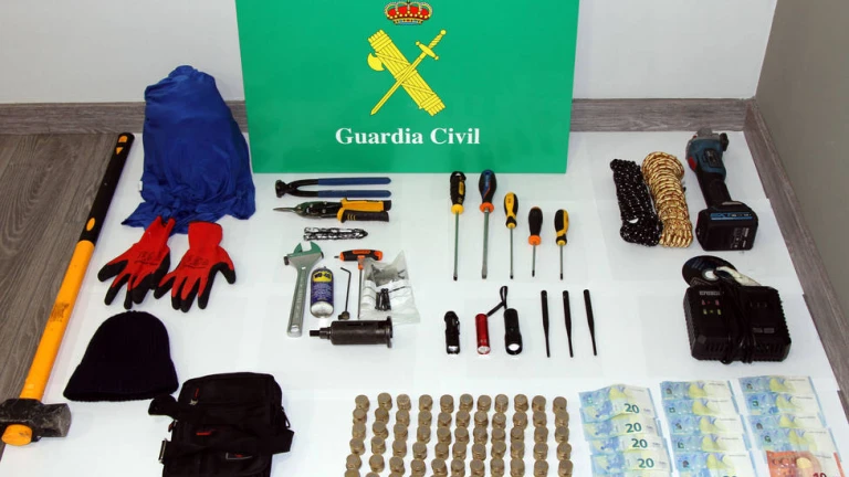Entre otros efectos portaba herramientas para atacar las cerraduras, material para ser utilizado en posibles robos con escalo o utensilios para recortar persianas laminadas. También se encontró una maza con la que se supone reventaba las máquinas recreativas o expendedoras.