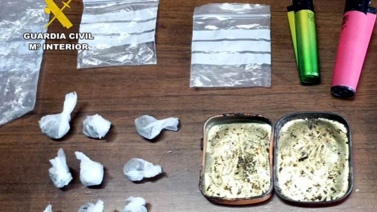 A uno de ellos, se le encontró entre sus pertenencias una caja metálica con nueve trozos de hachís, de aproximadamente 1 gramo cada uno, dosificados individualmente, procediendo a la intervención de la droga y restos de efectos reseñados anteriormente, así como a la detención del menor.