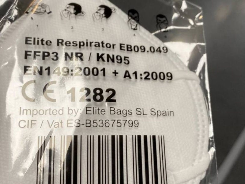 Mascarilla ELITE tipo FFP3/NK95 modelo ELITE RESPIRATOR EB09.049: Estas mascarillas, que entran en la categoría de equipo de protección individual, tampoco cumplen con la normativa de filtrado y por lo tanto pueden suponer un riesgo para la salud. El aviso de la necesidad de su retirada llegó por parte de la Junta de Andalucía el 7 de mayo de 2020.