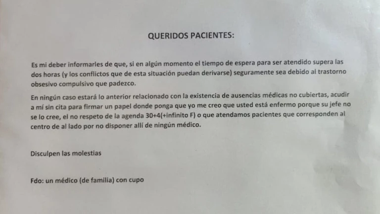 Los médicos de AP denuncian que la situación que describe la pregunta se da por desgracia en muchas situaciones en la vida real de los facultativos “y no porque padezcan ningún tipo de trastorno, sino porque estén haciendo su trabajo y el de dos o tres compañeros ausentes”, asegura el médico santiago Raba. Dice este facultativo que sobre quién debería recaer esta pregunta, sobre si padecen o no algún trastorno mental, es sobre los gerentes de los centros que permiten estas cargas de trabajo.