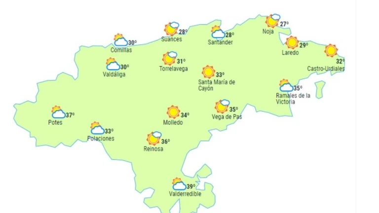 Se esperan máximas de 39 grados en Liébana y de 37 en Campoo, el centro y el valle de Villaverde. Por la noche llegará una galerna