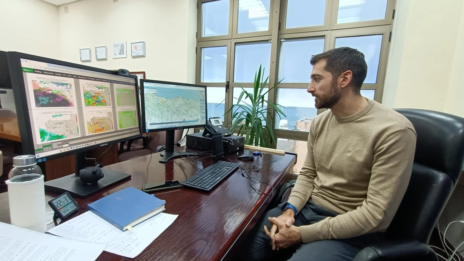 Sergio Fernández, en su despacho de la AEMET en Cantabria