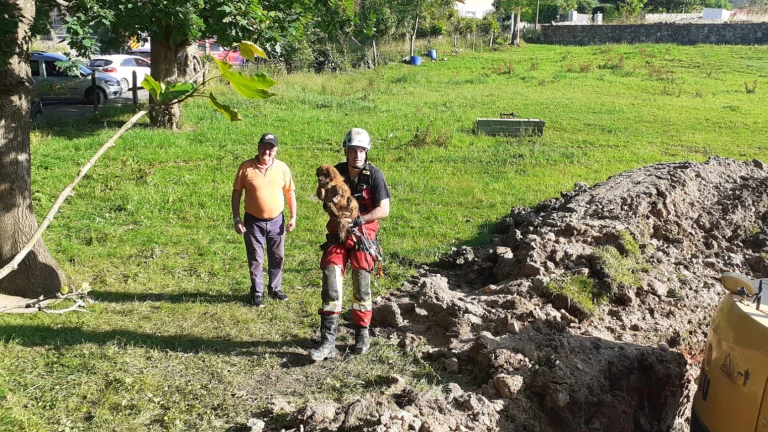 El equipo de rescate y los Bomberos del Gobierno de Cantabria, con la ayuda de una excavadora, han rescatado a dos perros que se encontraban atrapados en una sima a nueve metros bajo tierra en la localidad cántabra de La Cavada, en el municipio de Riotuerto.