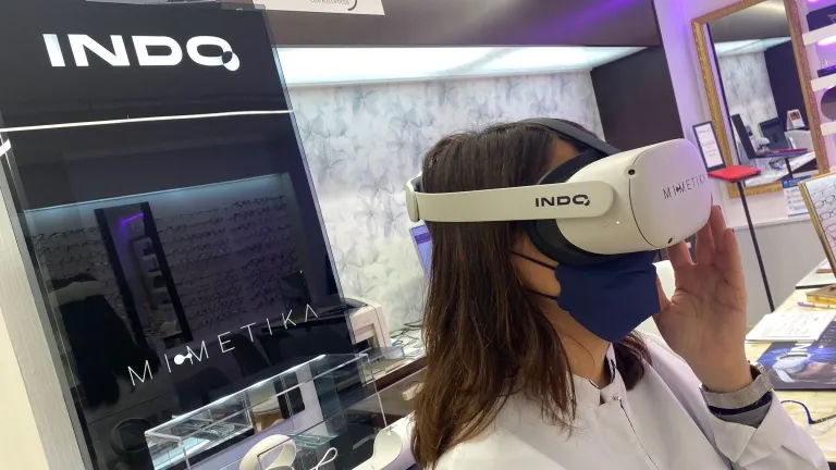 Mimetika de Indo permite, gracias a la realidad virtual, la óptima adaptación a las lentes progresivas. Solo disponible en Marpe Estilo de la calle Tesifonte Gallego, 6