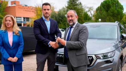 El rector Julián Garde, la vicerrectora Leonor Gallardo y el gerente de Automaor, Javier Martínez, explican en que consiste este acuerdo