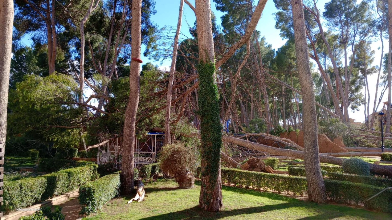 La ciudad de Hellín está registrando en el día de hoy fuertes rachas de viento de hasta los 150 kilómetros por hora, y que han provocado la caída de árboles en zonas ajardinadas y espacios públicos. La situación es peligrosa, hay ramas y troncos en el suelo y riesgo de nuevos desprendimientos.
