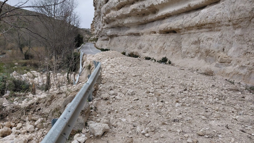 Según ha explicado a COPE Albacete la alcaldesa de Jorquera, Pilar Medina, el suceso se ha producido por las fuertes rachas de viento y las lluvias de la reciente borrasca Kristin, que han provocado la caída de parte de la estructura sobre el asfalto nuevo de la calzada.