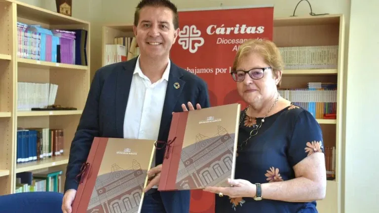 La Diputación Provincial de Albacete ha incrementado en 40.000 euros su aportación al convenio anual que mantiene con Caritas Diocesana. En la sede de esta entidad, en la plaza de los Molinos, el presidente de la Diputación provincial, Santiago Cabañero, y la directora de Caritas, Rosa García Fernández de Sevilla, han escenificado la firma del mismo que alcanza en este 2022 los 210.000 euros frente a los 170.000 de años anteriores.