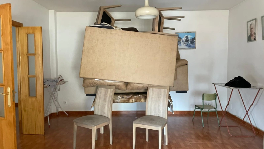 En el salón de la vivienda amenazada, “hemos subido algunas cosas a una mesa, lo que hemos podido”.