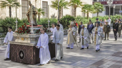 La procesión con la imagen del santo, portada por los seminaristas, ha discurrido por las calles aledañas a la catedral, con la participación de la mayor parte de los sacerdotes del presbiterio, fieles y autoridades militares y civiles.