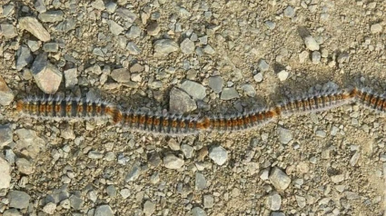 Seguramente si muchos de ustedes han paseado estos días por nuestros parques, se habrán encontrado una compañía desagradable por el suelo. Habrán visto que hay oruga procesionaria del pino. Su apellido se debe, recordemos, a su característico paso marcial y a la larga fila que hace junto a otros individuos de la misma especie.