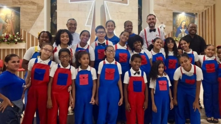 "40 niños y adolescentes que recorremos la geografía dominicana cantando y alegrando la vida de mucha gente. Hacemos alrededor de 70 conciertos al año. Llevamos ya 6 producciones musicales y tenemos a la mitad la siguiente producción" explica el misionero.