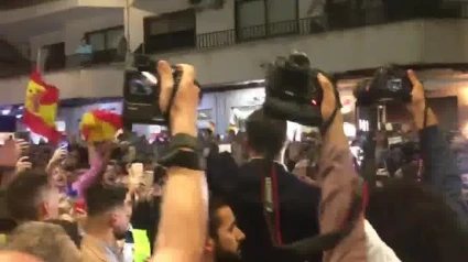 Simpatizantes de Vox abarrotan una calle de Ciudad Real por un mitin de Santiago Abascal (PINCHA VÍDEO)