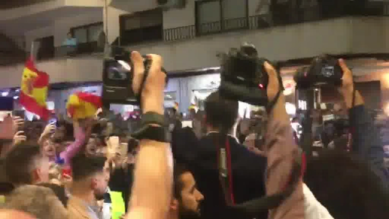El Presidente de Vox ha salido a saludar a los que estaban fuera y ha criticado al Ayuntamiento por no haberles cedido un lugar más grande