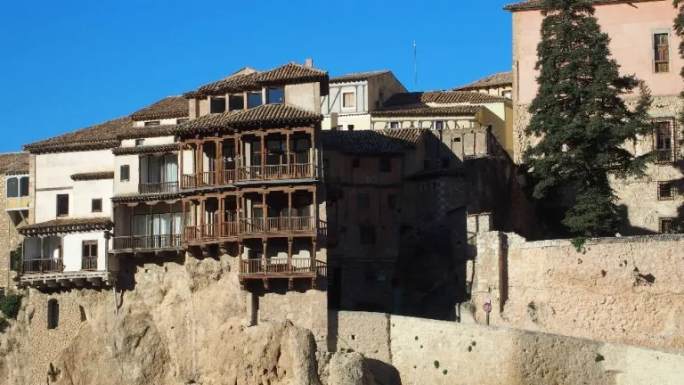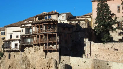 La carcoma en uno de los balcones de las Casas Colgadas de Cuenca obliga a paralizar parte de las obras